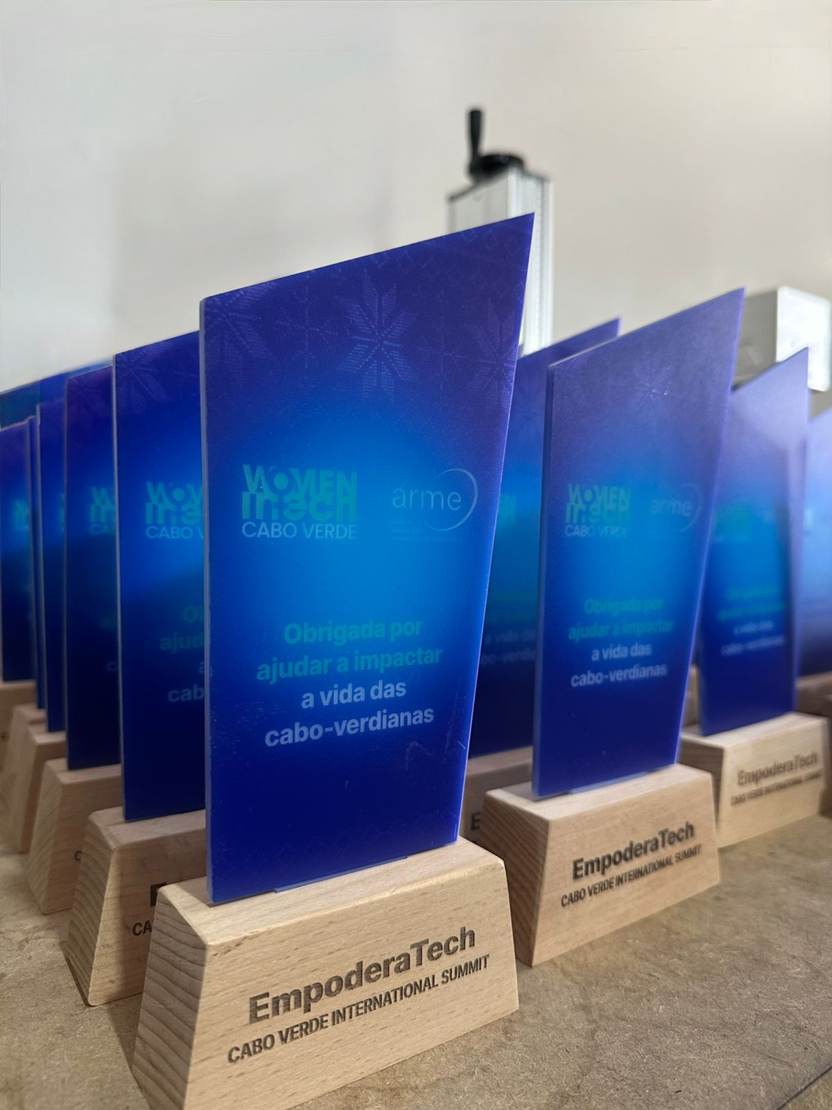 Troféus acrilico e madeira